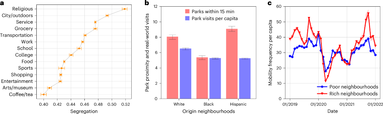 相关研究成果以“移动行为数据驱动的城市不平等性研究方法”(Using human mobility data to quantify experienced urban inequalities)为题,于2月17日发表于《自然·人类行为》(Nature Human Behaviour)。