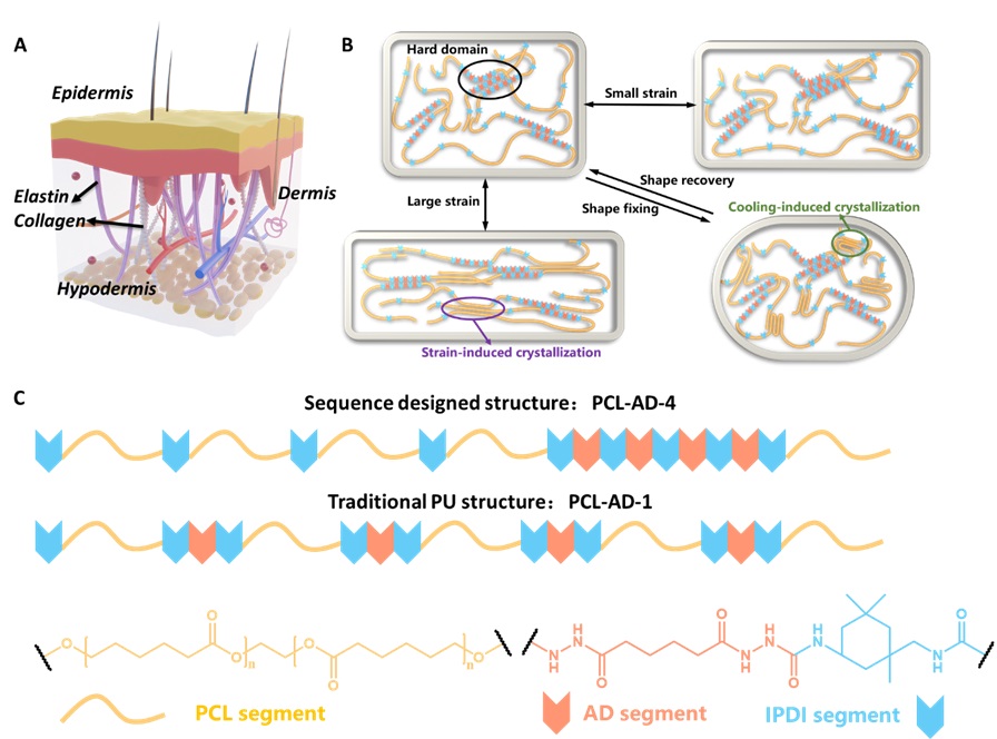 6月13日,相关研究成果以“耐损伤、体温响应形状记忆的仿生皮肤生物医用弹性体”(Damage Resistant and Body-Temperature Shape Memory Skin-Mimic Elastomer for Biomedical Applications)为题,发表于《科学进展》(Science Advances)上。
