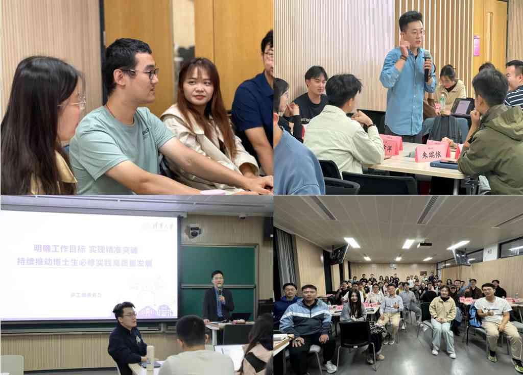 党委研究生工作部部长梁君健、党委宣传部副部长许亮、党委统战部副部长南彬、政策研究室副主任凌云分别围绕研究生德育工作助理的工作理念和清华“双肩挑”辅导员制度的优良传统,公共传播的新情况新特点和基本规律,学习贯彻党的二十届三中全会精神铸牢中华民族共同体意识,有效提升材料写作能力的方法等作专题讲座。