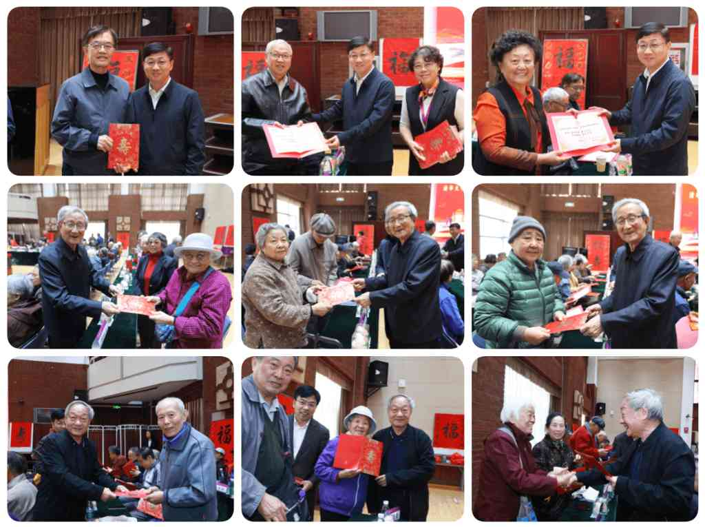 今年,全校共有134位老同志年满80岁。学校为年满80岁及以上的离退休老同志统一发放慰问金,并向现场参会的80岁寿星赠送了伴手礼。