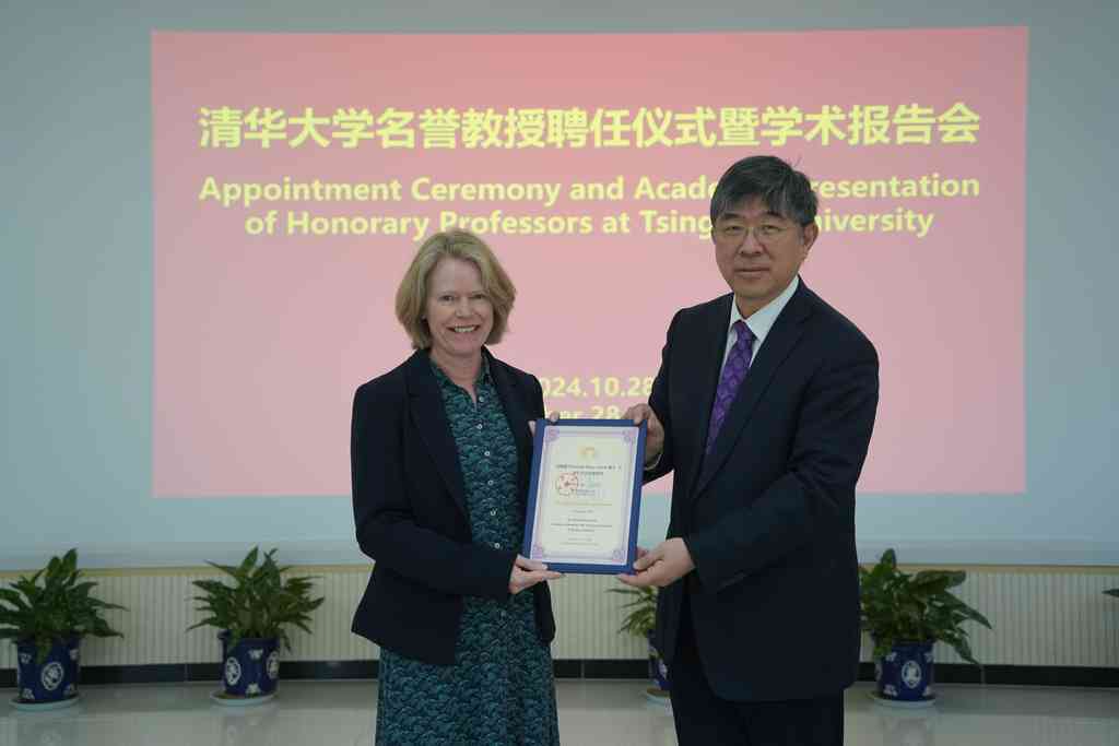 郑力为黛博拉·格里夫斯颁发名誉教授聘书。土木水利学院副院长赵建世主持仪式。