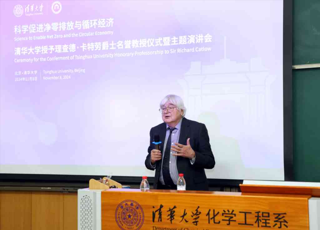 授予仪式后,理查德·卡特劳爵士作主题演讲。他介绍了实现净零排放和循环经济的重要性以及化学和化工的关键作用,探讨了化学工业从依赖化石资源转向非化石资源的重要性与实现路径,展示了其课题组在相关领域的最新研究成果,重点阐述了全生命周期分析的必要性以及可持续发展的全球挑战和机遇。