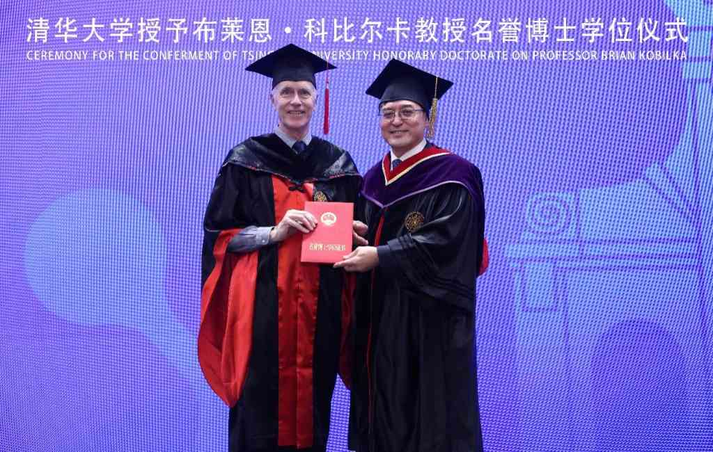 姜培学为布莱恩·科比尔卡教授颁发名誉博士学位证书
