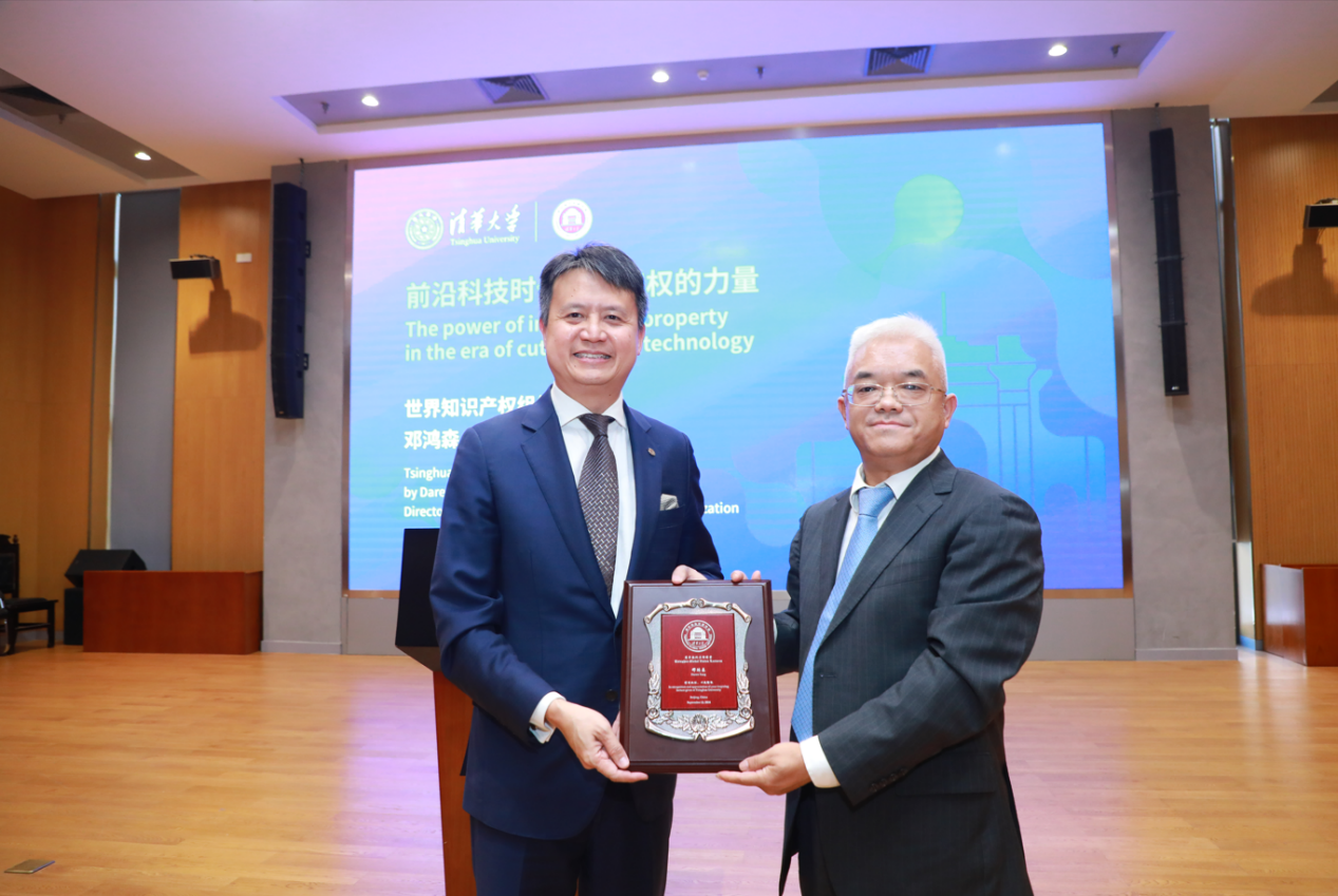 周光权向邓鸿森赠送清华海外名师讲堂纪念牌