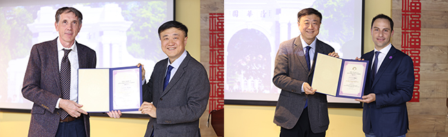 杨斌表示,很高兴与各位国际学者欢聚一堂。2024年,学校在国际合作方面取得了重要进展,未来将有更多国际学者和学生加入清华。新的一年里,学校将继续倾听国际学者的意见和建议,与大家共建和谐友好的国际化校园。
