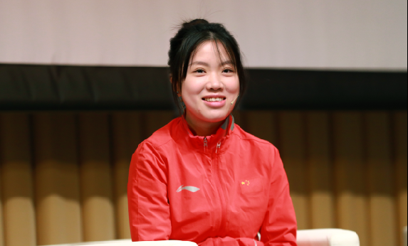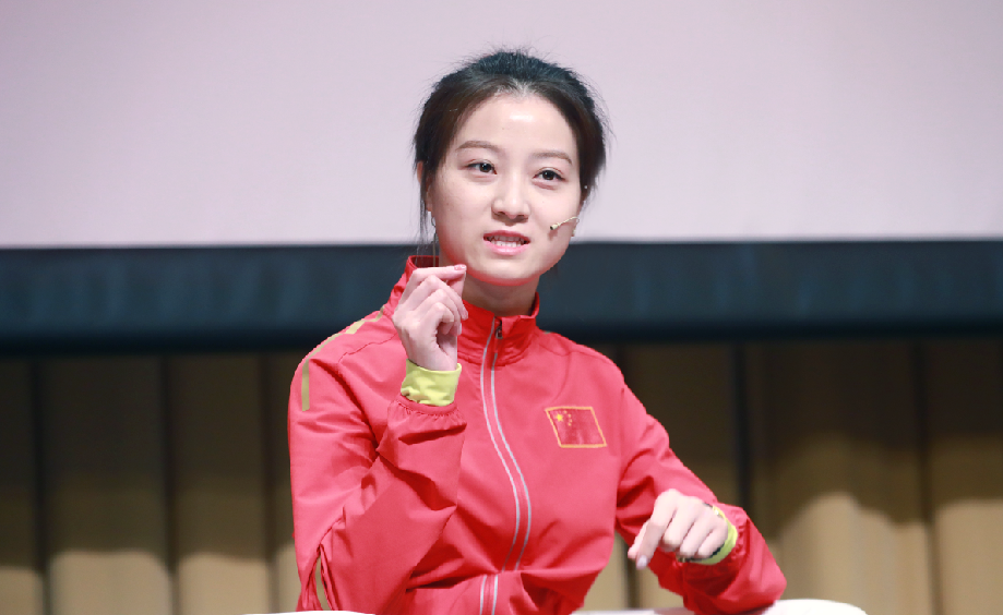杨倩、史梦瑶二位同学介绍了自己从结缘射击到出征奥运的成长之路。杨倩表示,自己因射击人才选拔测试突出和好奇心理接触射击,也曾因训练枯燥想放弃,但教练、父母的开导和为国争光的责任感让她坚持下来。在东京奥运会10米气步枪混合团体项目上,自己做到了屏蔽外界干扰、专注做好自身而最终实现逆转。她认为体育磨练了自己的意志,也使自己变得更沉稳。